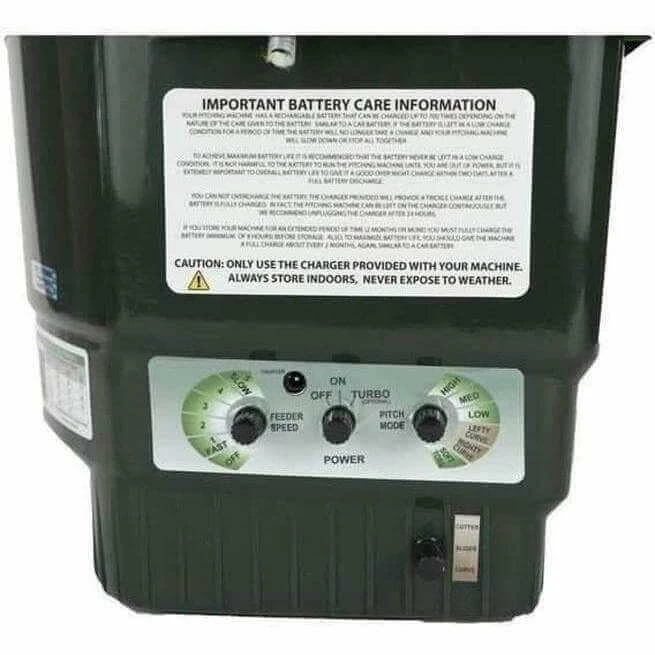 - Speeds: Soft Toss, Low, Medium, High, Turbo