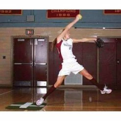 This comes with a regulation size pitching rubber. This mat is great for all ages and this item is very useful for older pitchers to keep practicing off pitching rubbers even while inside. This is a very effective and affordable softball pitching tool and of course it comes with the quality you would expect from ProMounds!