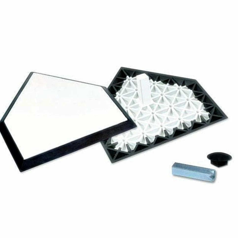 Official size home plate that is built from tough molded rubber for durability. It has a beveled black border and includes all hardware for assembly plus anchor and base plug!