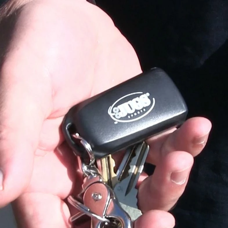 The Changeup Baseball Pitching Machine has a remote control on a keychain that changes speeds from a fastball to changeup at the touch of a button. The remote can be pressed near the machine, by the hitter, or in the dugout.