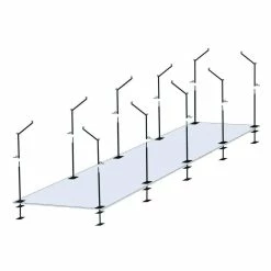 New easier to install design with many great features. 2-piece pole assembly with cantilever top and individual winch on each pole makes net set-up and take down quick and easy! 55′ Frame comes with 8 poles and ground sleeves. 70′ Frame comes with 10 poles and ground sleeves.