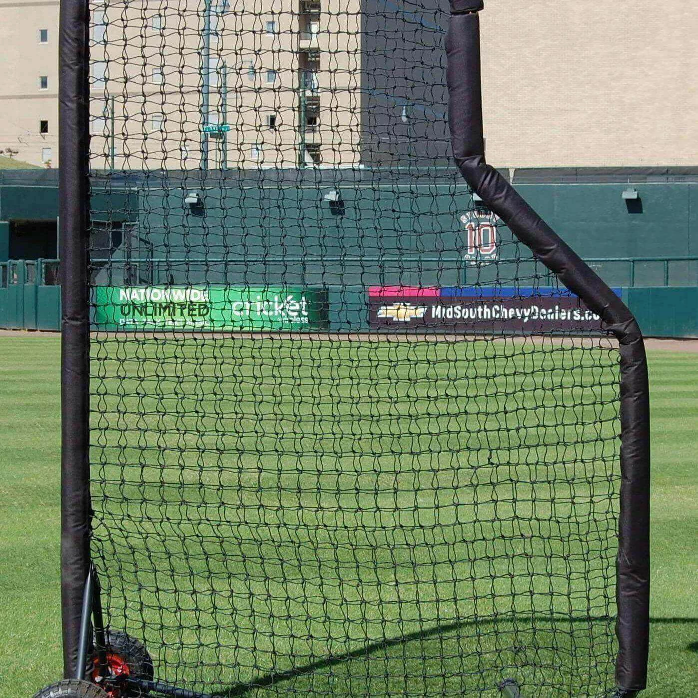 Our new Mini Professional Pitcher’s Screen features a 2” heavy gauge galvanized steel frame with a 3.2mm thread pillowcase style net. Screen includes a heavy duty wheel kit with pneumatic turf protecting tires and heavy duty fabric wrapped foam that encases the entire frame. This is one of the most durable L-Screens on the market. The L-Screen might be the most important piece of equipment on the field or in the cage. It is not recommended to go cheap when purchasing the screen. A L-Screen is an investment and when you get one with 3.2mm netting it is built to last!