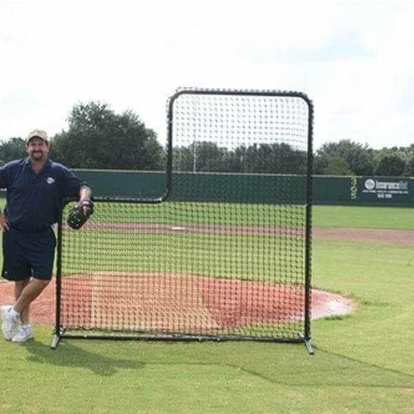 The standard 1.5″ powder-coated steel bolt-together frame gives the Varsity L-Screen both stability and strength to stand up to the punishment of batting practice. The UV weather-treated #36 knotted net slips over the frame pillow-case style to offer double protection. The 7′ H x 7′ W and 3′ x 3′ cutout offers ample space to throw behind and gives the pitcher a comfortable feel while throwing batting practice!
